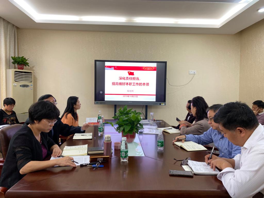 鄢朝晖对WilliamHill(威廉希尔)官网10月份的主题教育工作开展情况进行了汇报,并围绕“担使命、履职责,矢志为民服务”主题主讲了题为《深化责任担当,提高做好本职工作的本领》的主题教育专题党课。