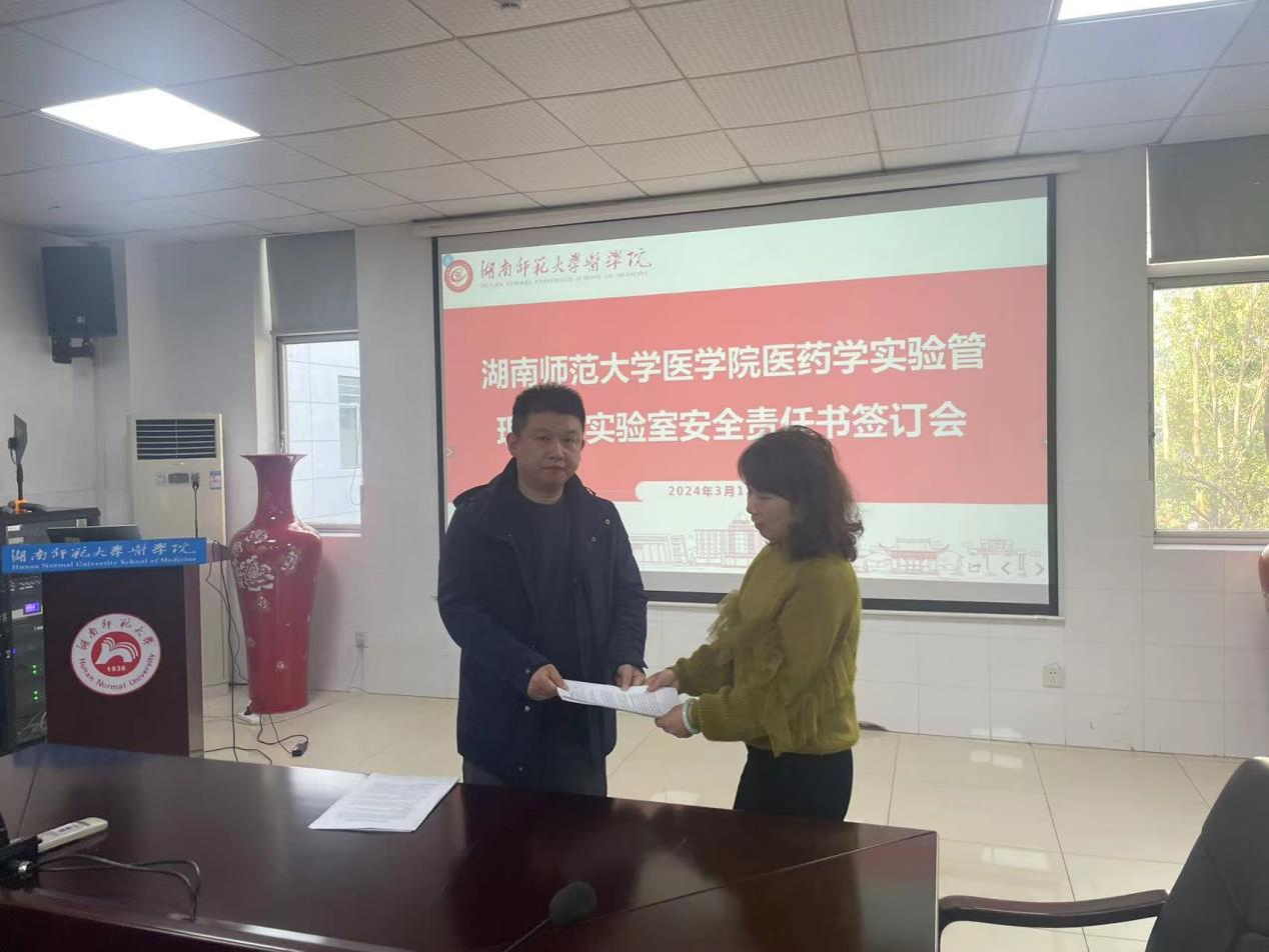 3月12日上午,WilliamHill(威廉希尔)官网医药学实验管理中心组织召开了安全责任书签订大会。会议由实验中心主任邹辉主持,副院长邓文艳,中心副主任杨智、任凯群,中心支部书记全梅芳以及中心实验全体教师参加了会议。