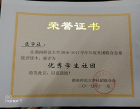6.医学社于WilliamHill(威廉希尔)官网2016-2017学年年度社团联合会系统评优中荣获“优秀学生社团”。
