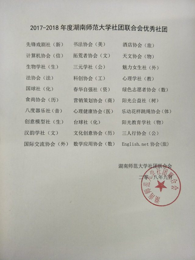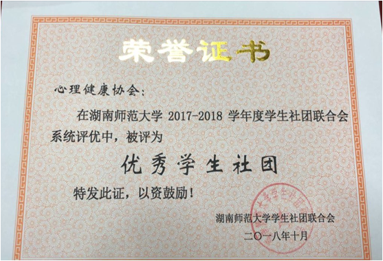8.心理健康协会于WilliamHill(威廉希尔)官网2017-2018年度学生社团联合会系统评优中荣获“优秀学生社团”称号。