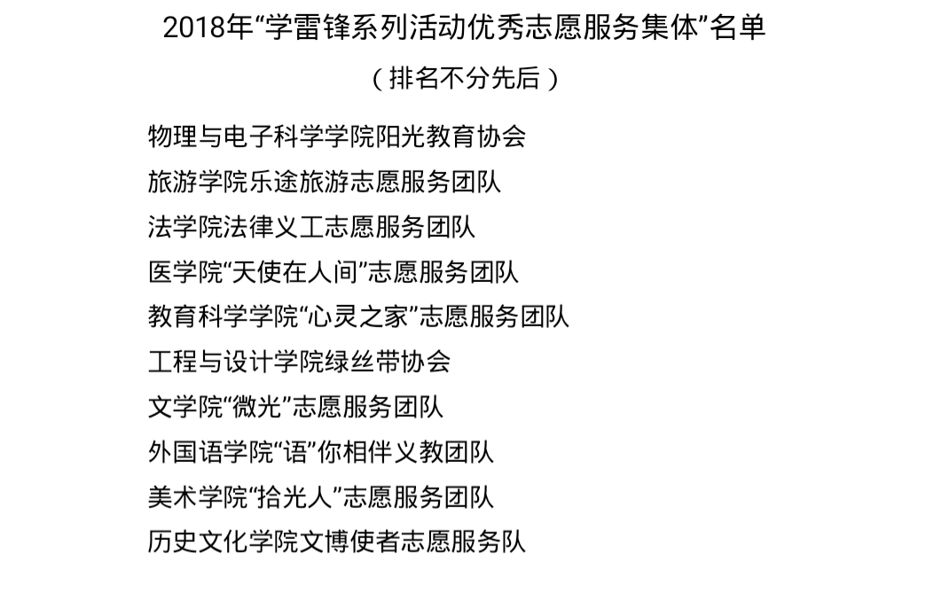 6.青年志愿者工作部获2018年5月获“学雷锋系列活动优秀志愿服务集体”(校级)
