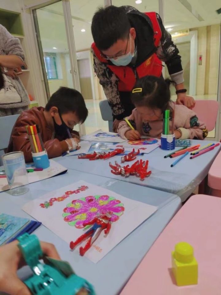 此次志愿者活动分八次进行,每次有六名志愿者参与。先由活动负责人与医院负责人交接完毕后,了解了大致活动情况,再带领志愿者们前去进行活动。通过志愿者与小朋友们在爱心小屋玩小游戏,教他们画画、讲故事、唱儿歌、玩橡皮泥等等,让志愿者们把自己的关爱传递给小朋友们,做到关心儿童,让患儿感受到人文关怀,也让志愿者感受到儿童的纯真。