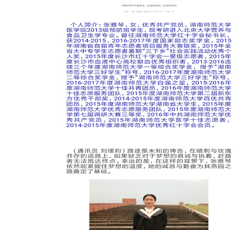 人物编辑板块:采访医学院内优秀的学长学姐及老师,撰写人物稿投递至校翔网及院微信公众号,展现医学院优秀人物的风采。