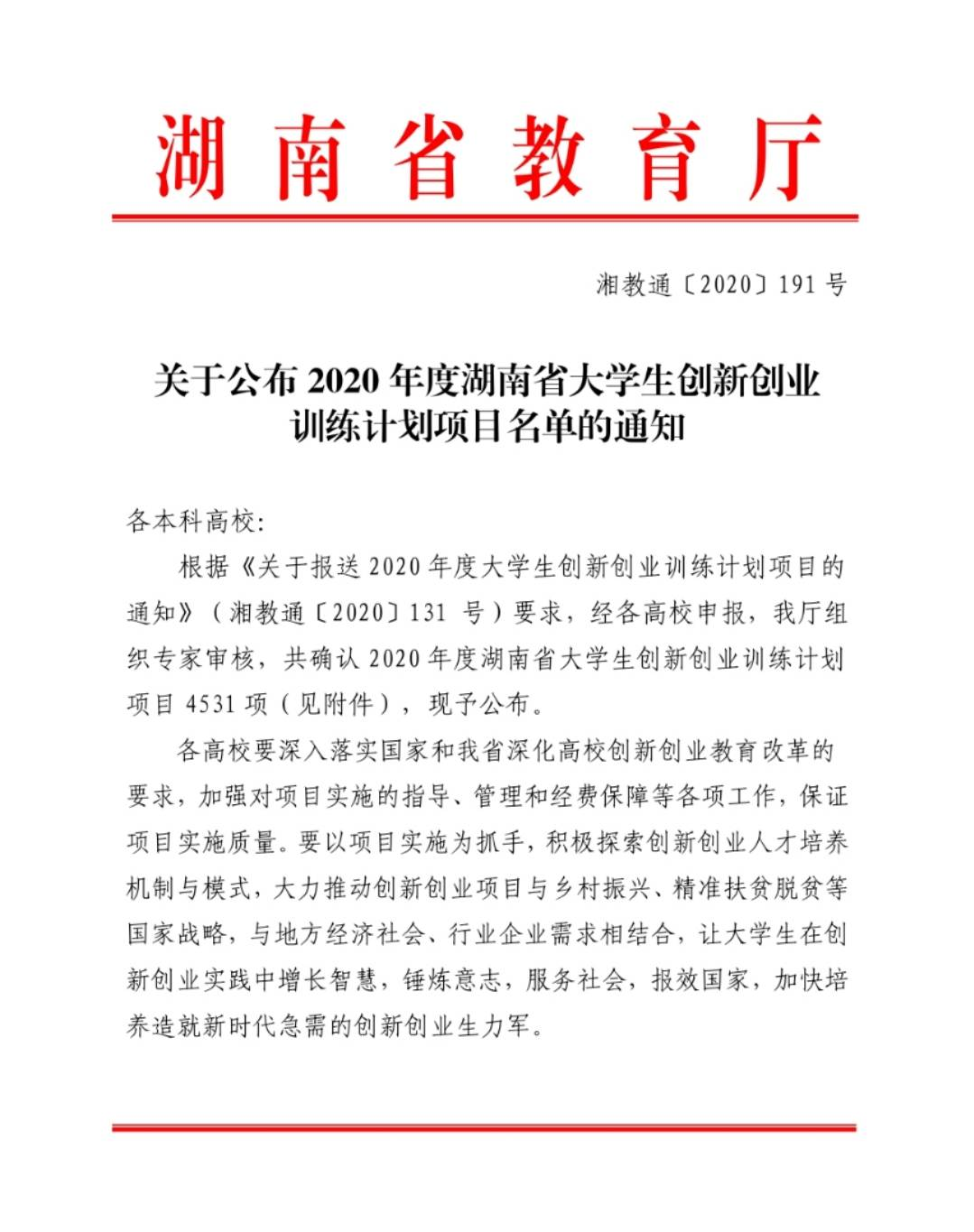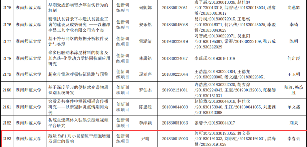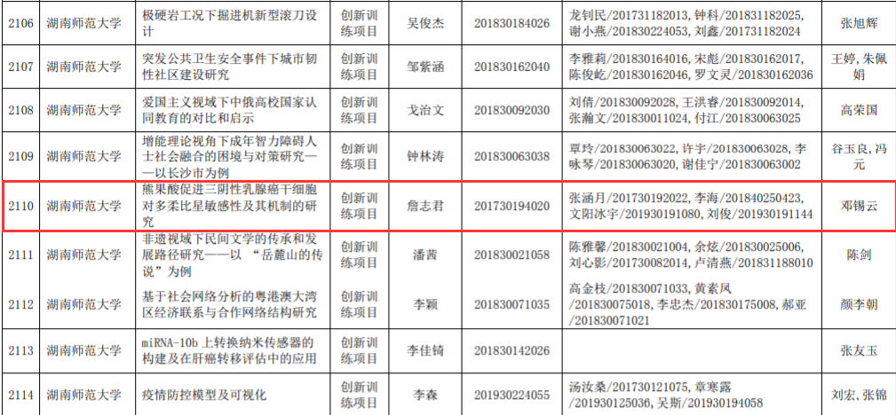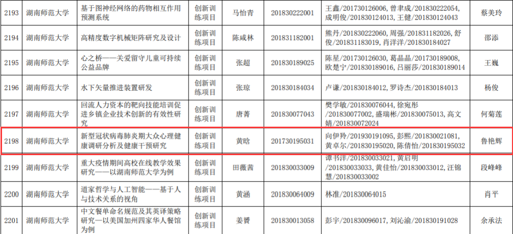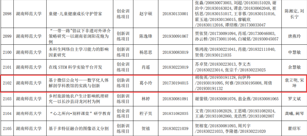 近日,省教育厅公布了2020年度湖南省大学生创新创业训练计划项目名单,由WilliamHill(威廉希尔)官网教师担任第一指导教师的创新项目获省级立项16项,创下近年新高。