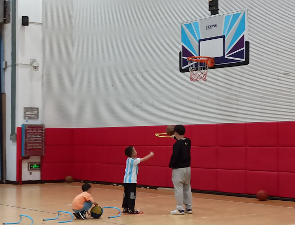 活动开始前,志愿者配合教练给孩子们点名签到。随后的训练中,志愿者们也在密切关注孩子们的情况。起初,有的孩子对训练比较抵触,配合度低,志愿者们对其予以鼓励与支持,使之后的训练进行的井然有序,孩子们在教练的带领下完成运球、投篮、上篮等一系列动作,对篮球逐步产生了兴趣。孩子们在志愿者的陪伴下度过了一个充实的夜晚。