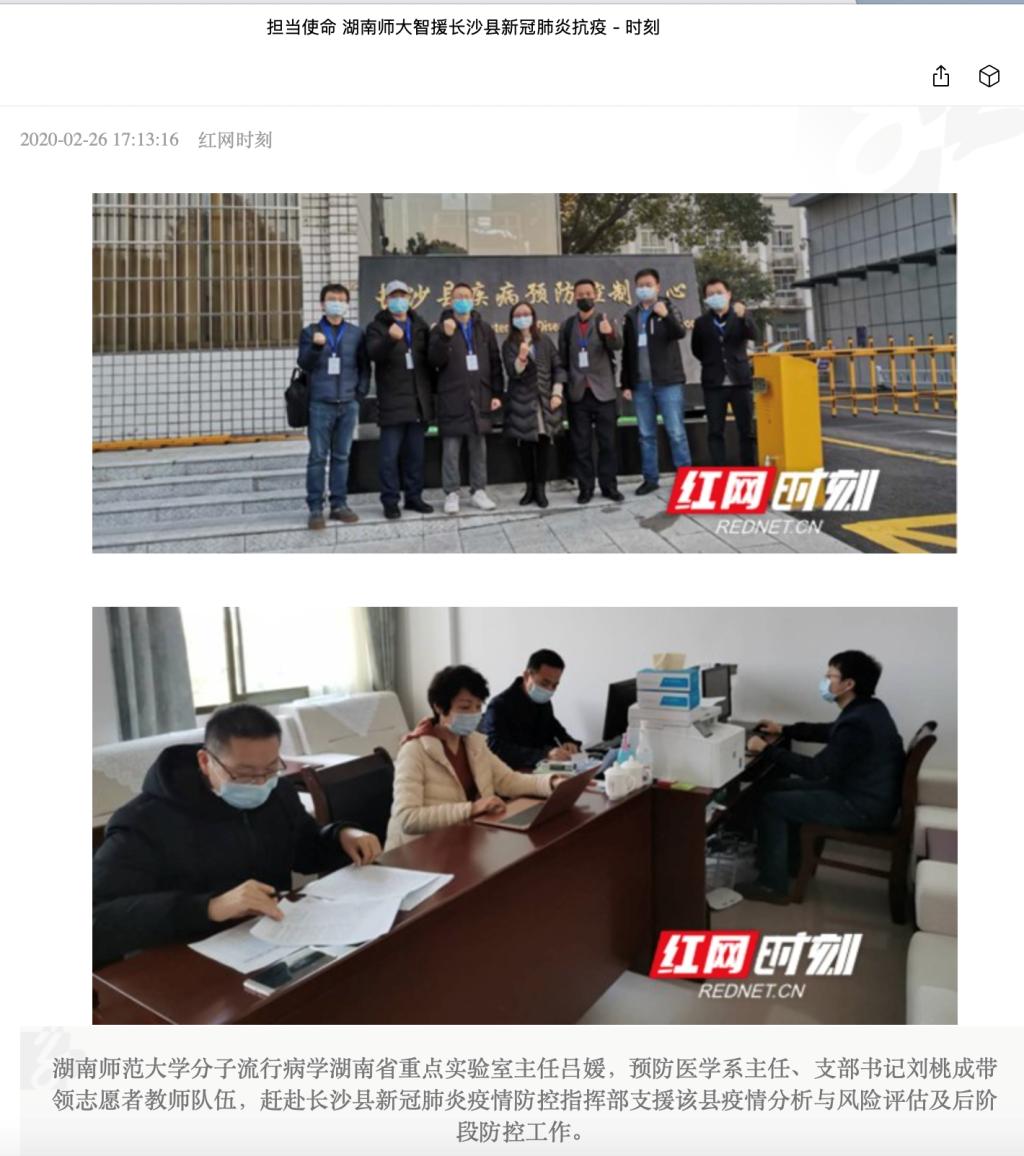 2020年初,实验室核心成员依据新冠疫情防控的最新研究成果对湖南省、长沙市新冠肺炎的防控实践提供了科学指导。成员团队赴长沙县新冠肺炎疫情防控指挥部现场,开展了防控工作并获得高度评价,相关事迹在“红网-时刻新闻”、“三湘都市报”等进行了报道。实验室为预防医学事业及分子流行病学发展搭建了良好的科研平台,为加快我省相关交叉学科的发展,助力“健康湖南”的建设做出贡献。