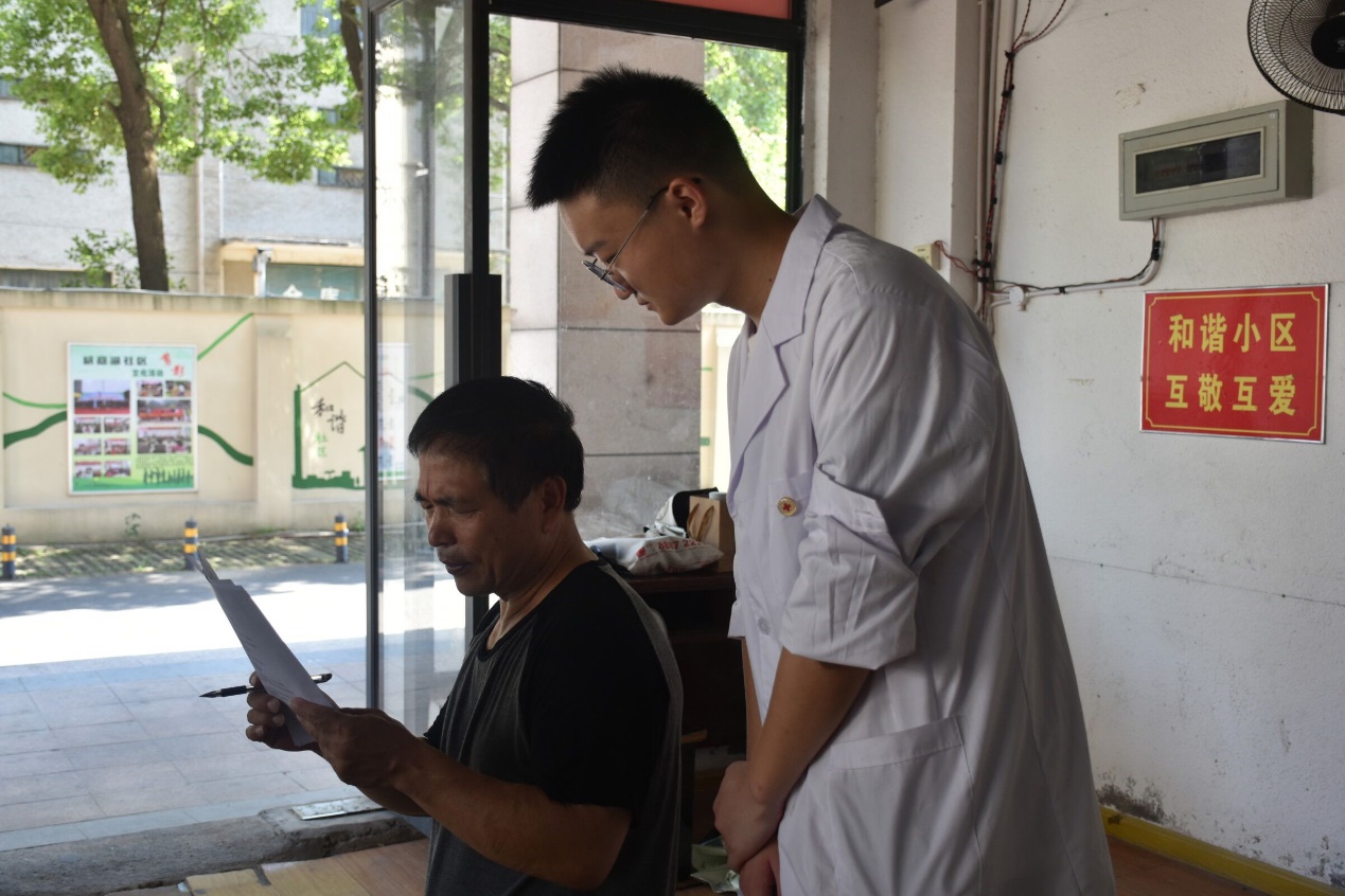 此次活动共分为三组,一组测量血压,一组测量血糖,一组负责问卷调查。三组分工明确,同时进行。