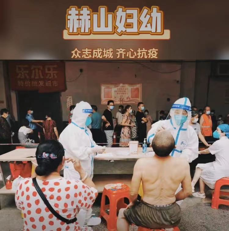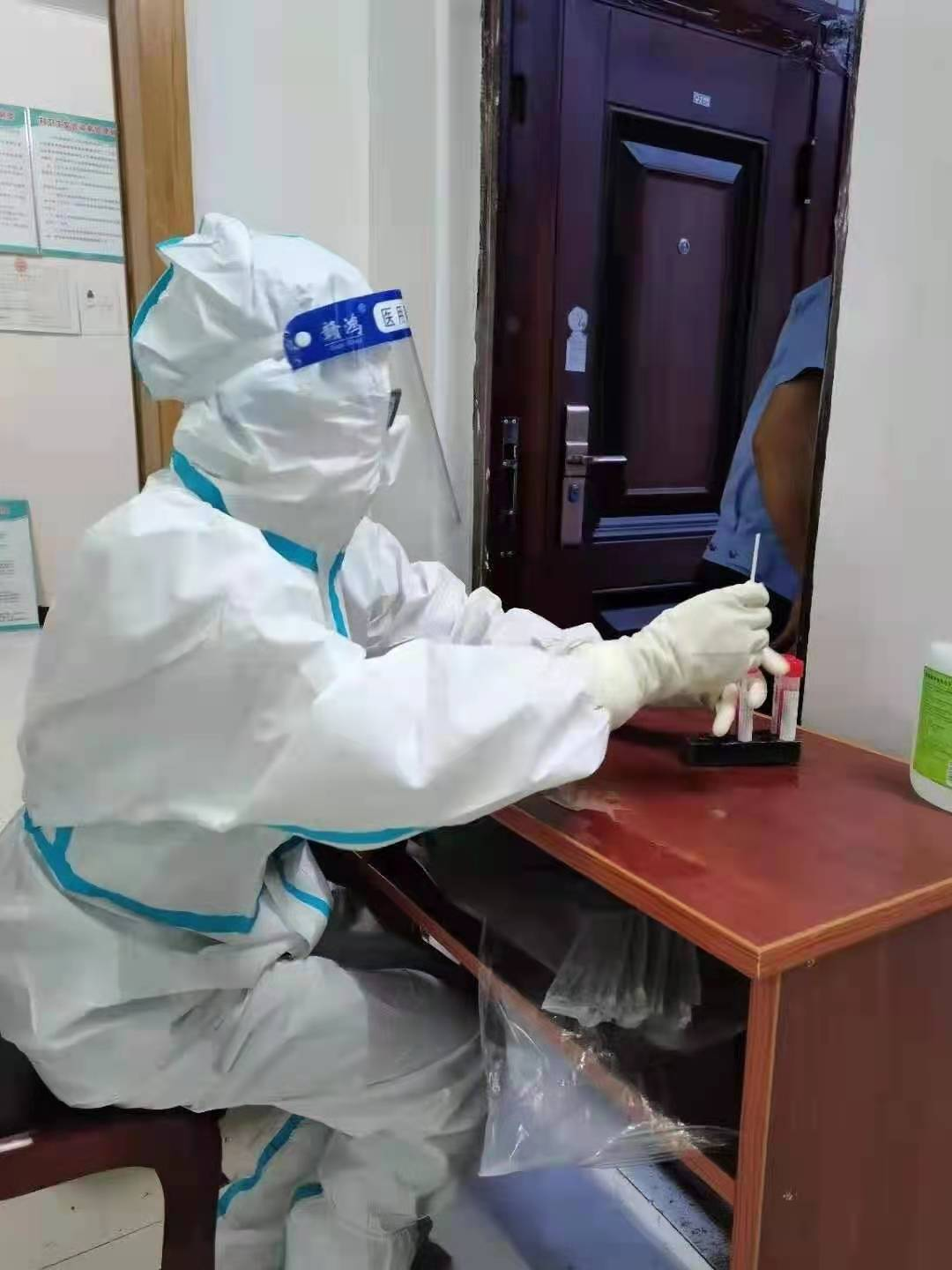 “我们身穿防护服在移动负压核酸检测车里日以继夜的工作,酷暑难耐,汗水湿透了衣服,双手被汗水浸泡得发白,但大家没有任何的抱怨和迟疑,心中只有一个目标,那就是尽快完成检测任务,早日控制疫情蔓延。”