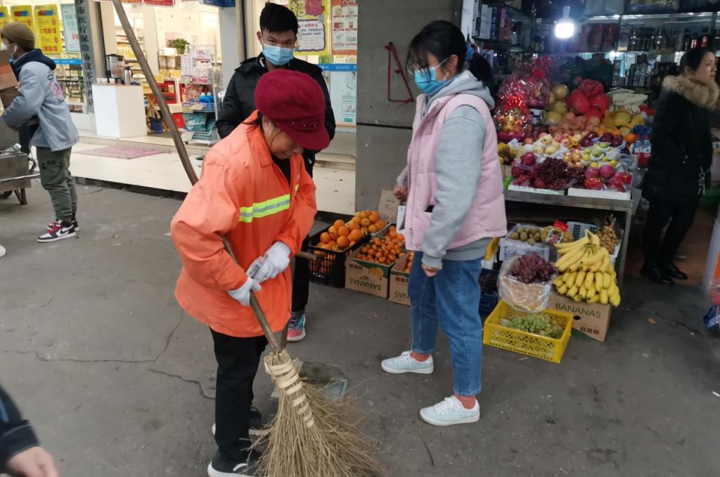 去到后门的志愿者们先是来到了湖南省胸科医院附近,一路上,志愿者们碰到了许多奋斗在工作岗位的环卫工人。他们有的正在打扫街道卫生,有的在将垃圾分类整理。