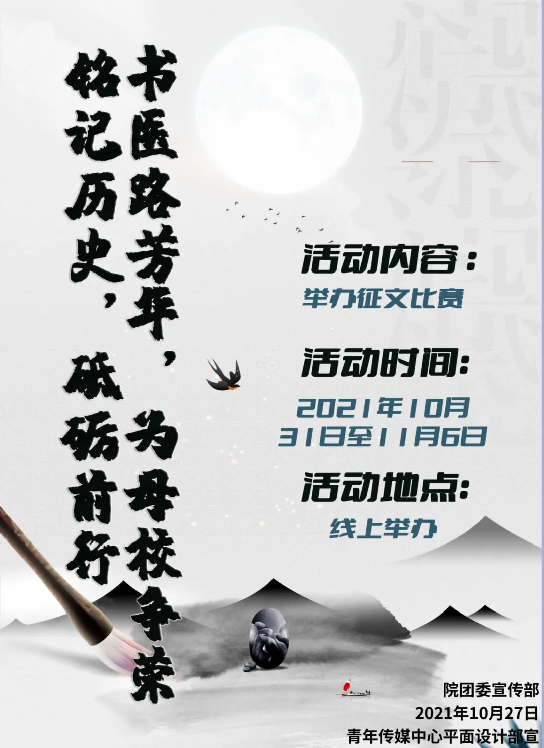 【活动主题】铭记历史,砥砺前行。书医路芳华,为母校争荣。