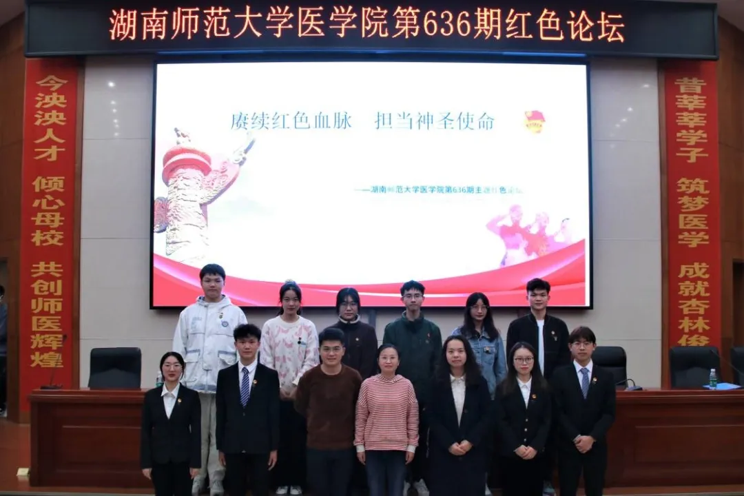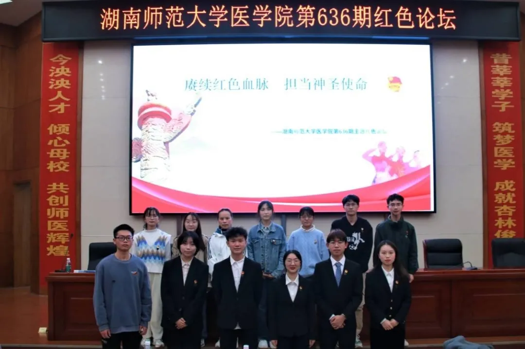 11月26日晚,WilliamHill(威廉希尔)官网团委宣传部于学术报告厅举行以“赓续红色血脉,担当神圣使命”为主题的红色论坛主讲会。预防系老师阳益德老师、预防系老师秦露露老师、院团委书记张明明老师、院团委学生副书记童海、院学生会主席团邓云帆、院团委学生副书记兼学生社团管理服务中心主任蒋秀金、院团委学生副书记兼青年传媒中心主任唐蓓、院学生会主席团郭小勇、院学生会主席团刘宇菲、校团委宣传部、各兄弟学院和部分医学院的同学参加此次论坛。