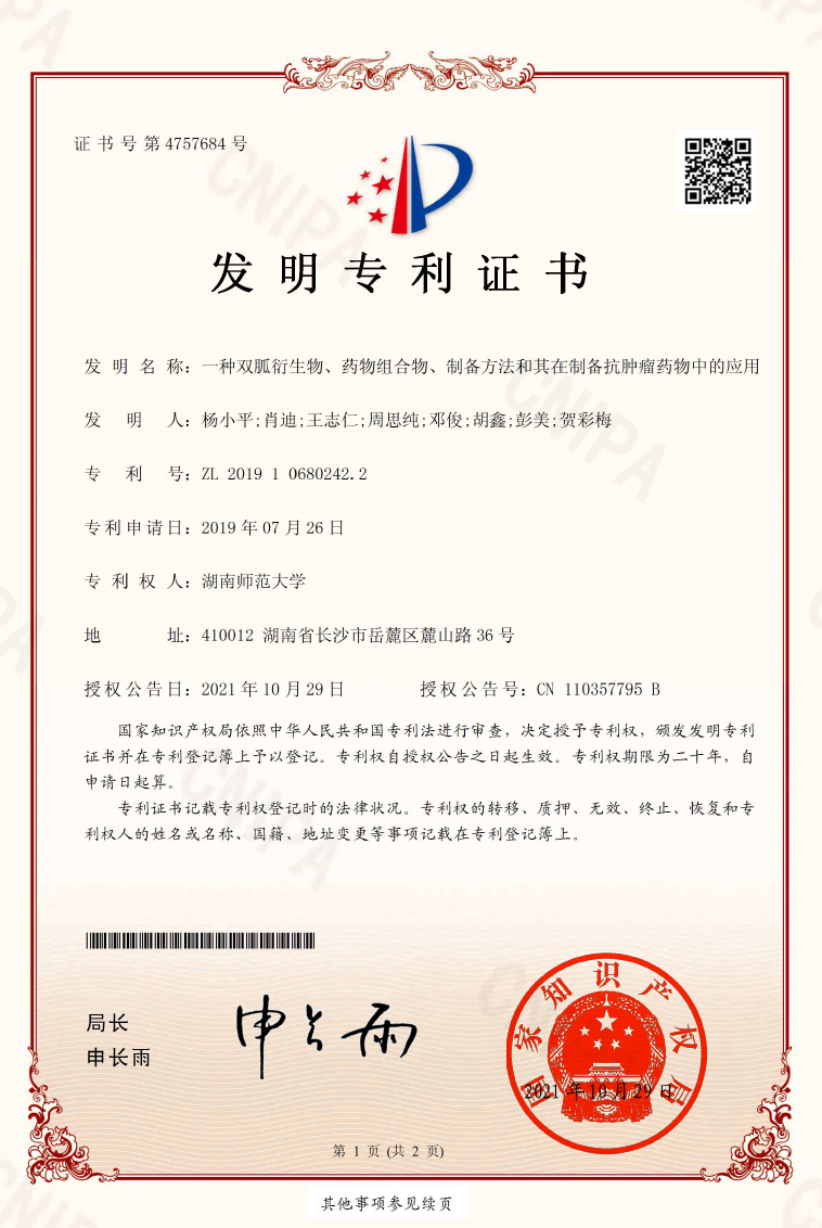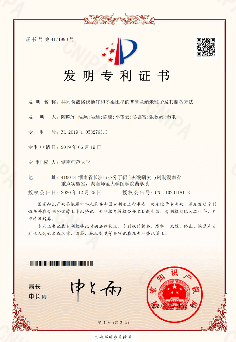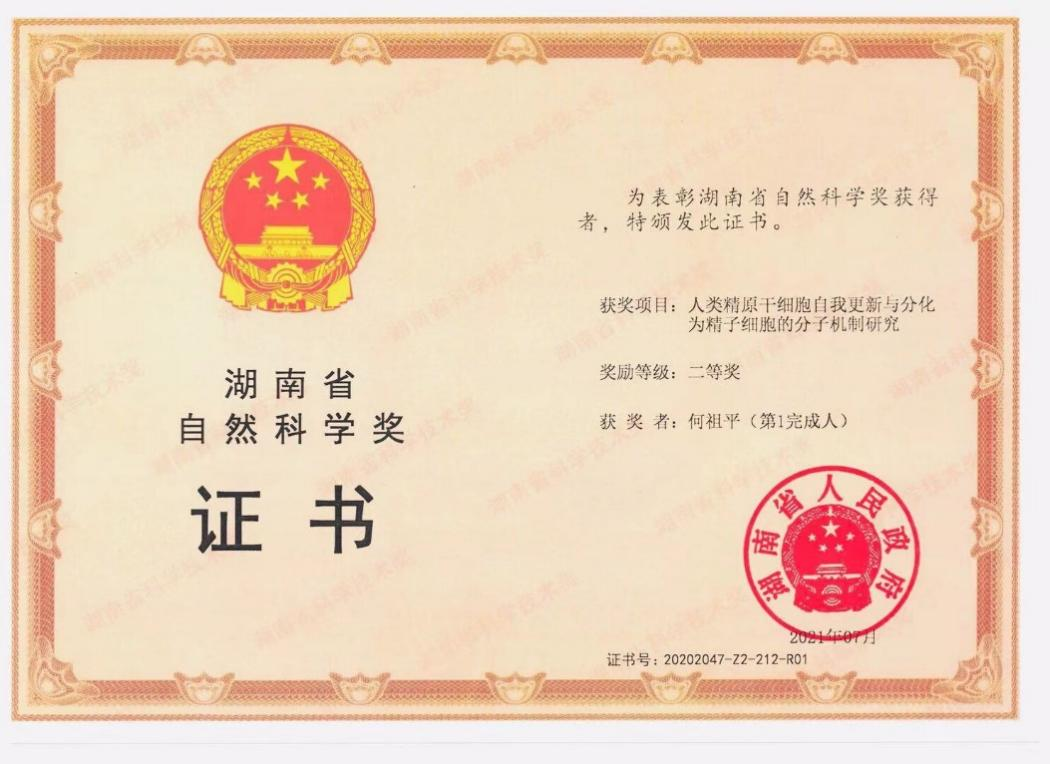 湖南省自然科学奖二等奖(何祖平第一完成人)