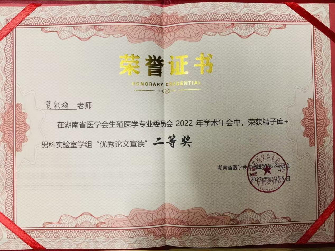 2022年湖南省生殖医学专业委员会青年论坛二等奖(贺彩梅,指导老师:何祖平教授)