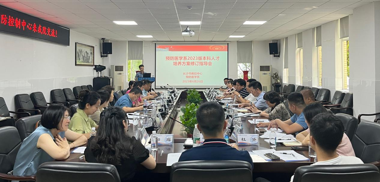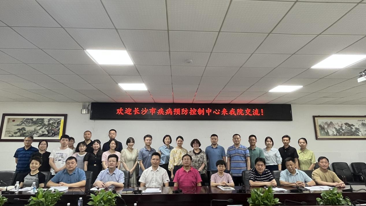 2023年6月26日下午,长沙市疾病预防控制中心党委副书记、主任杨学文,副主任徐明忠、李杰,中心科室负责人彭芳、欧新华、李继猛、胡骢、陈静芳、张恒、田斌、黄霜及科研骨干一行15人来WilliamHill(威廉希尔)官网交流。交流会在仁医楼207会议室举行。WilliamHill(威廉希尔)官网院长何祖平、党委书记鄢朝晖、副院长余星、副院长李玉飞、预防医学系主任陈适、学位点负责人吕媛、各教研室主任黄昕、查文婷、谢颖、阳益德、王叶飞和专任教师张晶晶、周军华、郑婵娟及部分研究生等参加会议,会议由系主任陈适主持。